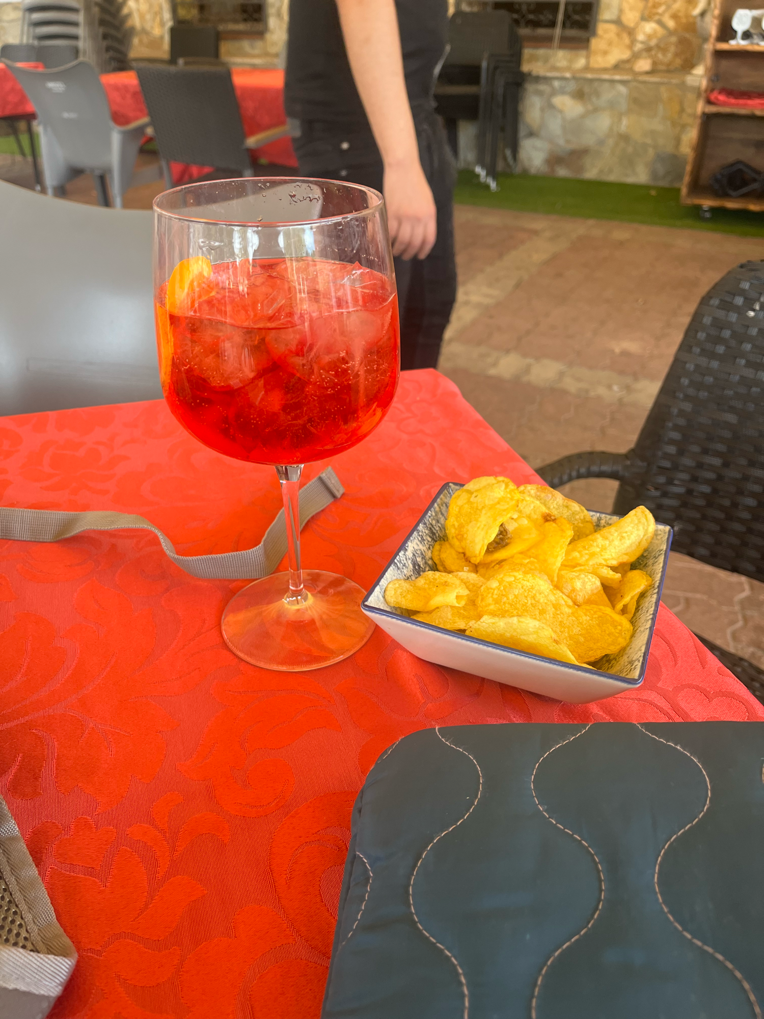 It was a wet start ! The plan today was to move further in to Spain, in to the Rioja region, so at least I would have a better chance of reading the road signs and the graffiti than I did in Basque territory. Even though I was riding through Rioja land, I didn’t notice that many grapes, so maybe they grow them in another part of the region. The day was a succession of climbs and descents, which is most depressing when you are on a bike, because you go up only to go down, so never seem to make headway. I prefer a long, gentle climb to the summit, and then a long ride down. But today was not like that. Towards the end there were some spectacular views of the Ebro valley, the River Ebro being the main river of the Rioja region, I think, and I am presuming along its banks is where most of the grapes are grown. I like Rioja wine, as I do a good Bordeaux, and a fine Pinot Noir. My plan had been to head for the camping ground in Logorno, but this time I checked the weather and could see that the rain was going to come, so I booked an AirBnB in Logorno. I was wondering how Edwin was getting on, because he also was heading for the camping ground in Logorno, and I thought that he might be happy of somewhere dry. But, I hadn’t come across him on the road and didn’t have his contact details. Anyhow, just coming in to Logorno, he came up behind me, and I told him about the AirBnB and that there was a sofa there as well, and he was welcome to avail himself if he wanted. I don’t think there was much to think about, given the rain that was on its way. So he came with me, and after navigating stairs with bikes up to the third floor, we had Japanese for dinner, and drank more wine, and then he took to the sofa, or maybe the floor on his sleeping mat, and I had the nice bedroom. And, it did rain, so it was a good decision for both of us. I’ve not much to report about Logorno, but like lots of Spanish towns, there is a wonderful choice of lovely food shops that sell colourful fruits and vegetables, charcuterie, deli stuff, fish, etc. All there, beautifully presented, and so enticing. And there will be markets most days. So wonderful, compared to the poor fare I have to put with back in Brum. If I want nice fish, I can get it on Wednesday from the travelling fish man, but other than that it’s the indoor market in town where all they seem to sell are frozen exotic stuff for the Chinese community. There is only one small deli where I can occasionally get guaciale di porco, if he has it. I mean, what can you do if you can’t get guanciale when you need it ?! So, Spain is a foodie heaven for me. Not to mention the tapas grazing that you can do throughout the day. And they do. I was in one place and I saw this middle age guy come in and eat pig ear with a glass of rosado, just as an in between meal snack. They eat parts of the animal which most people back home would shy away from. I had tripe one night. Lovely. Pig’s ear I am not sure about, though.